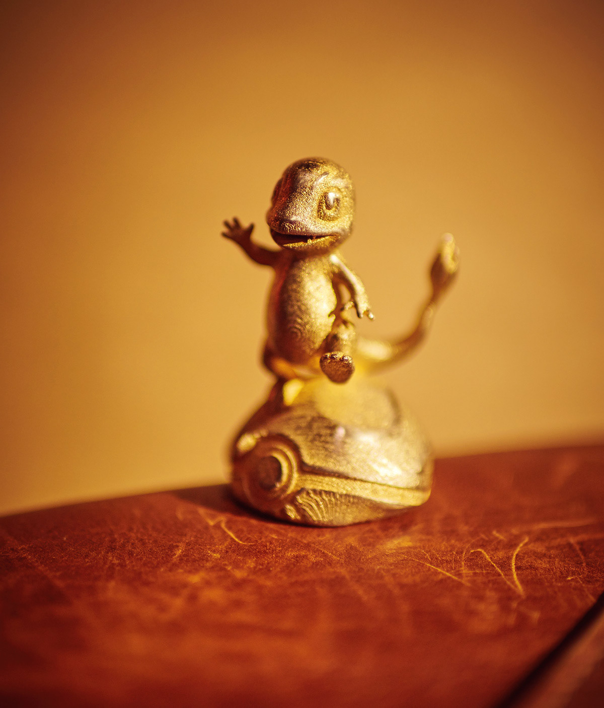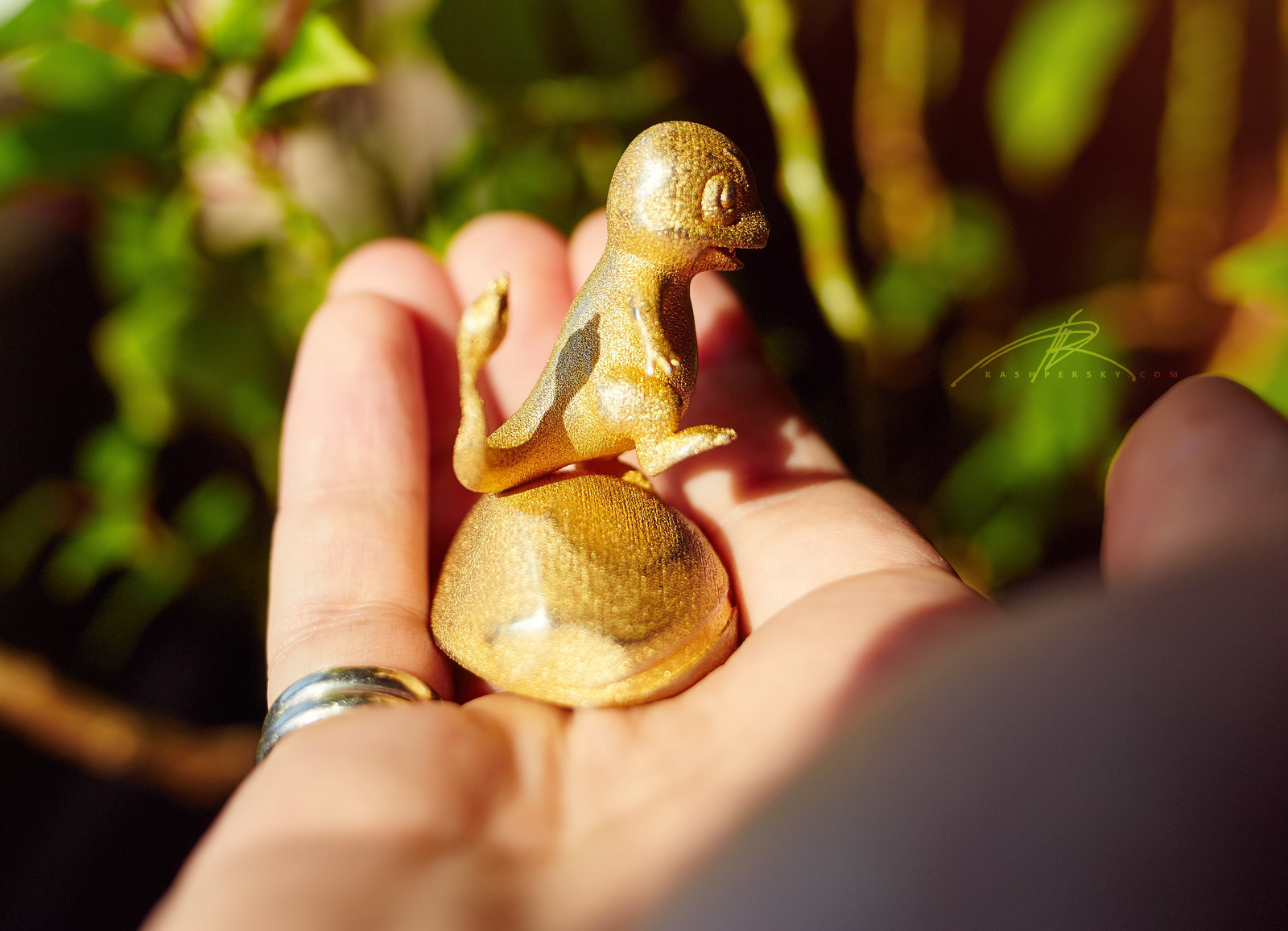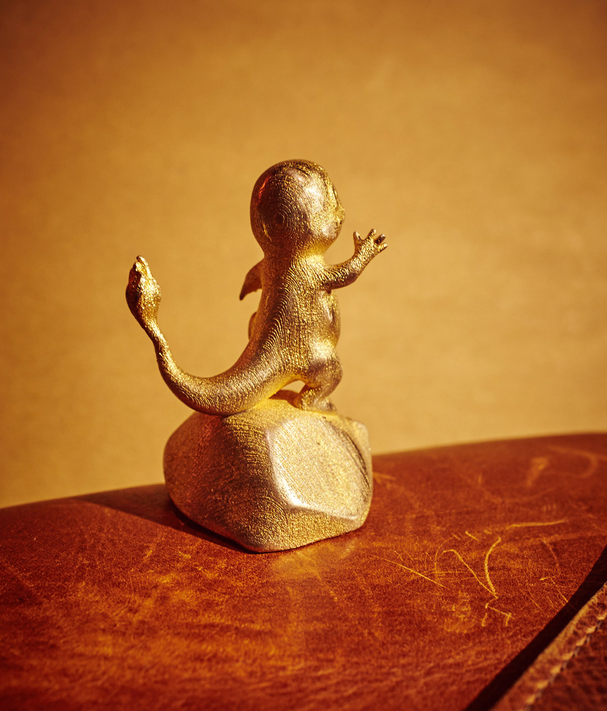 Charmander Sculpture from the original Pokemon series. - Modeled with LOVE - 3D printed in Gold Steel - 6 cm height (2.3 inch) - Hand-sanded