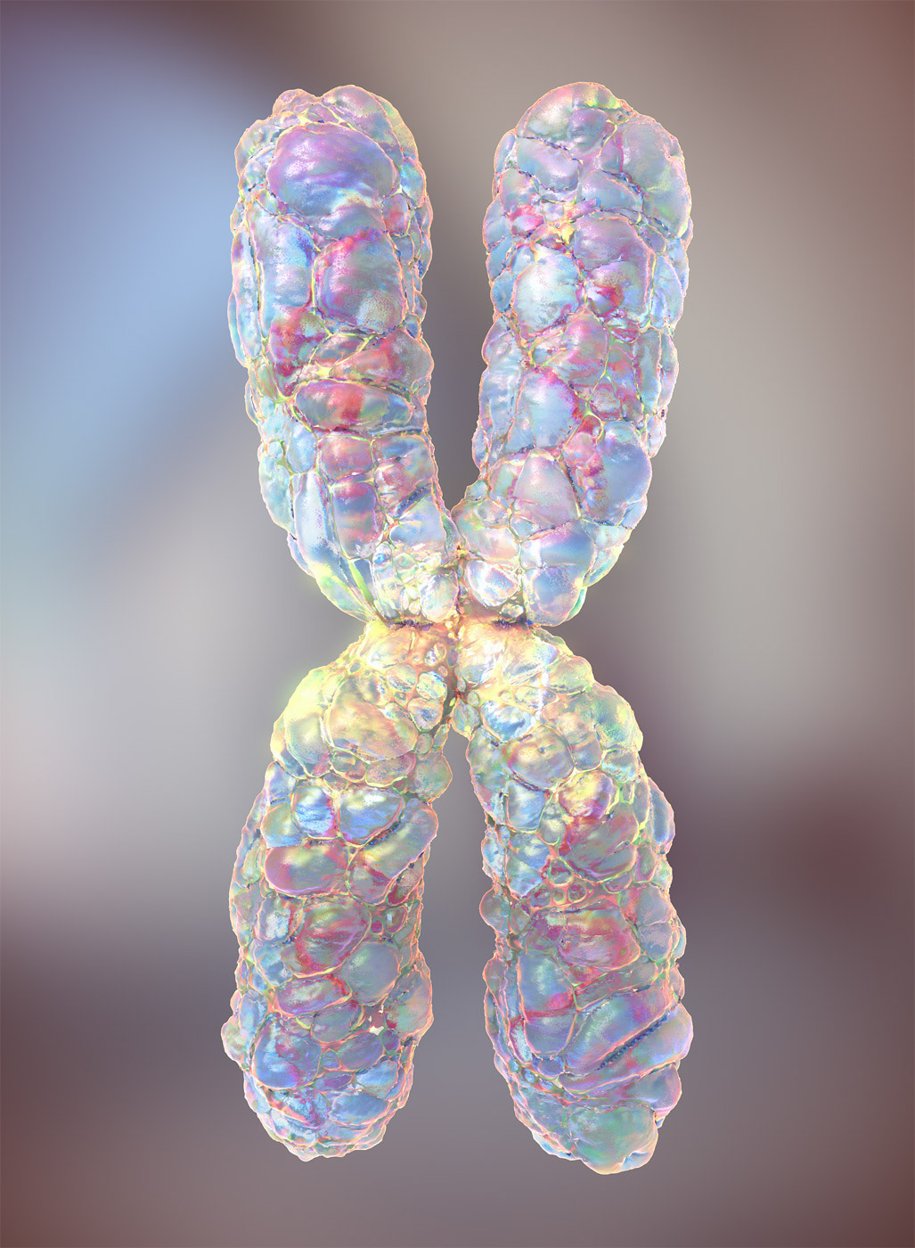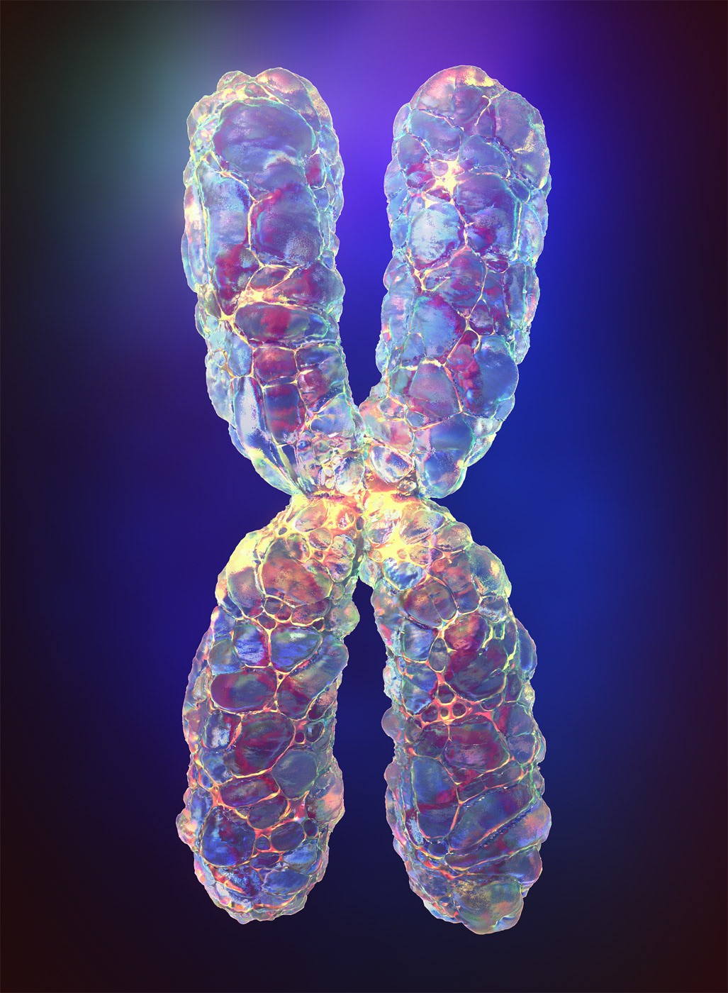 A chromosome is a package of DNA containing part or all of the genetic material of an organism. In most chromosomes, the very long thin DNA fibers are coated with nucleosome-forming packaging proteins.