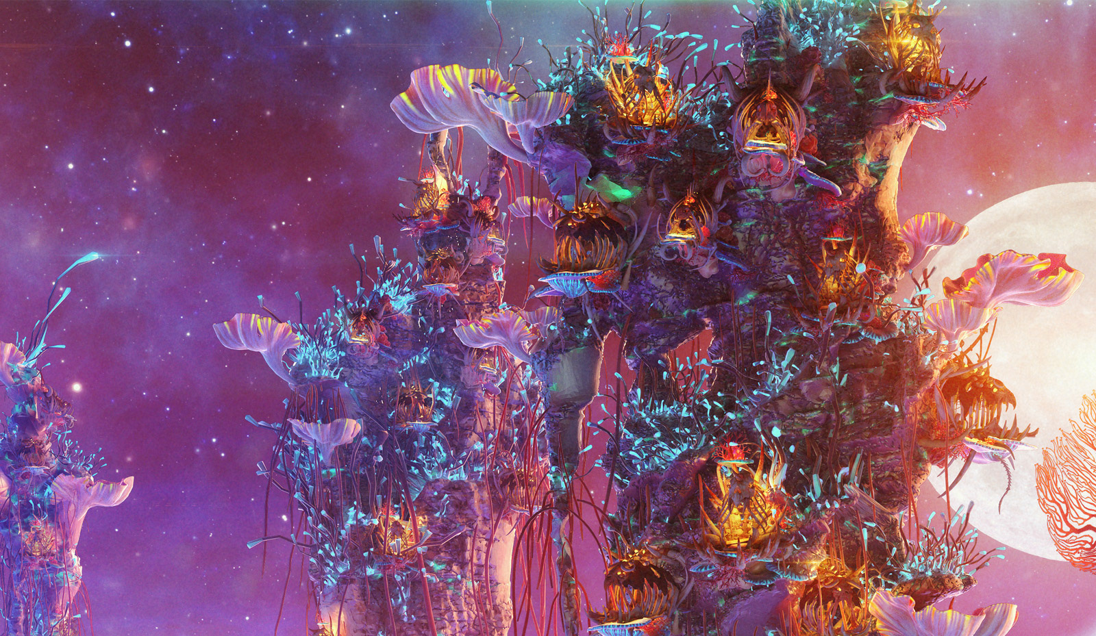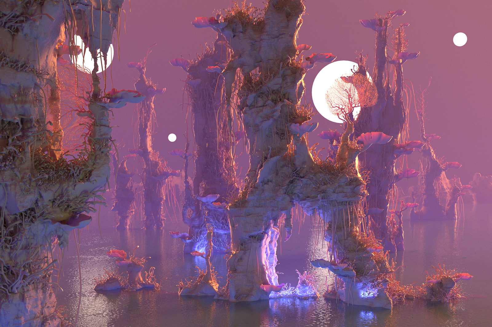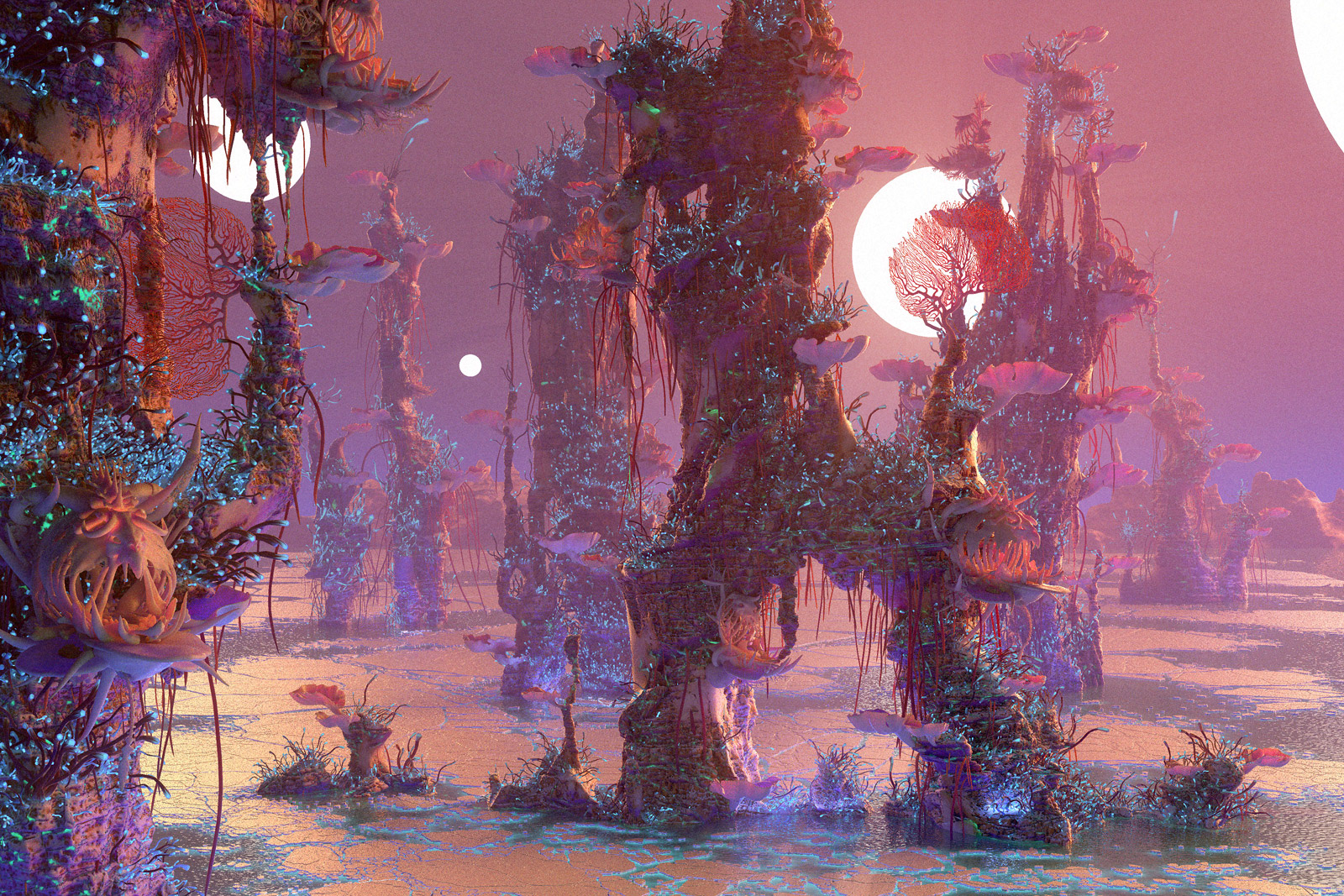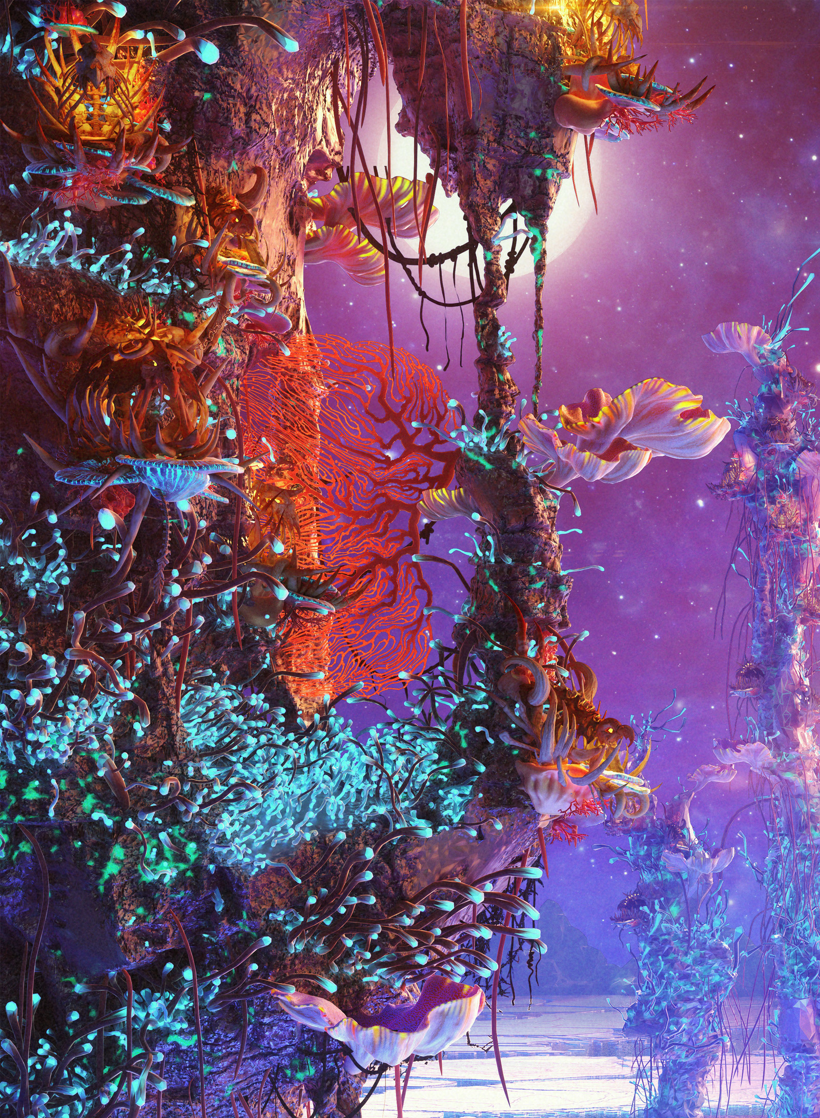 I'm very excited to show you guys some interesting project - concept design for an upcoming movie, that I was working on past year. It was under the NDA for a long time, but finally I'm allowed to show some images :) All models here done in ZBrush. VRay used as render, everything comped in After Effects. Special words of gratitude about Andrey Gritsuk who designed the houses-nests for this location, Alexey Kondakov - father of the broken moon that you can see over the horizon, and also my wife Elena Kashpersky. All the Floral elements and Ice models are her creations. You all guys helped me so much and did really amazing job!