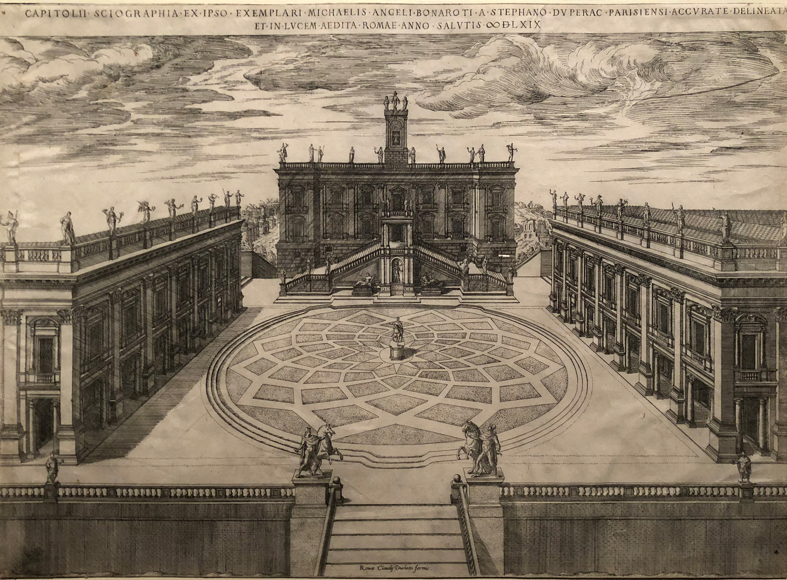 Little of Michelangelo’s planned architectural work in Rome, where he settled permanently in 1534, was constructed during his lifetime, although his ideas and designs ultimately transformed the Eternal City. His original drawings for monumental architecture and urban redesign do not survive, but his intentions are recorded in a series of prints published around the time of his death. His projects in Rome include, among others, the complete redesign of the Capitoline Hill, or Campidoglio; revisions and a redesign of Antonio da Sangallo the Younger’s Palazzo Farnese; plans for the church of San Giovanni dei Fiorentini; and the construction of the Porta Pia. As chief architect of the new Saint Peter’s Basilica for seventeen years, he left an indelible mark, evident today mainly in the dome and the southwest transept.