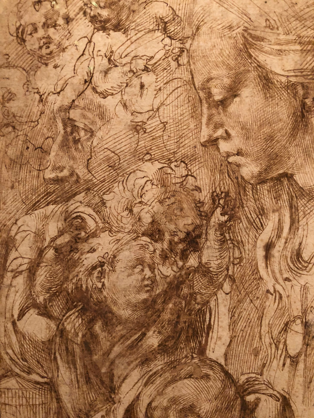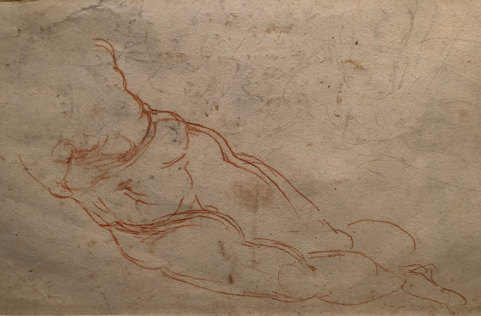 Although Michelangelo’s contracts forbade him from undertaking other projects while carving the tomb, he accepted a commission for the marble Christ the Redeemer for the church of Santa Maria sopra Minerva in Rome in 1514. The only confirmed sheet of studies for this sculpture is on view nearby.