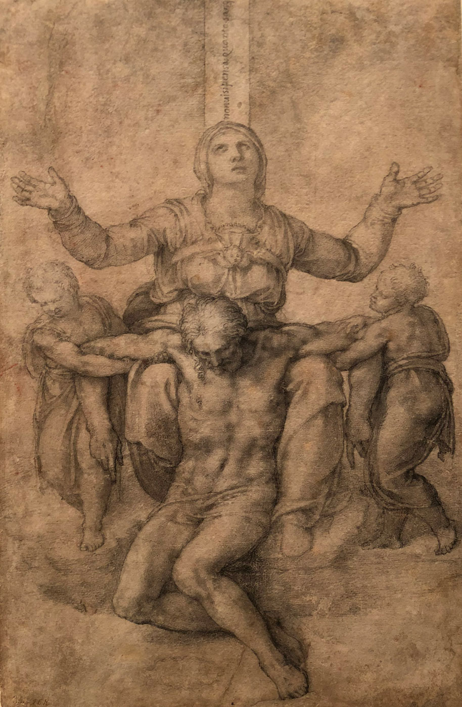 In lamenting Michelangelo’s death, the self-interested Duke Cosimo I de’ Medici also despaired that the artist had destroyed his own work: “Our vexation is only increased by the fact that he left no drawings, for it did not seem to us to be an action worthy of him to have surrendered the drawings to the fire.” Documents independently confirm that the artist had ordered his drawings burned on several previous occasions as well. Vasari’s 1568 biography attributes Michelangelo’s willful destruction of his numerous drawings, sketches, and cartoons to a wish “that no one might see the labors he endured and the methods with which he tested his imagination, so that he might appear nothing less than perfect.”