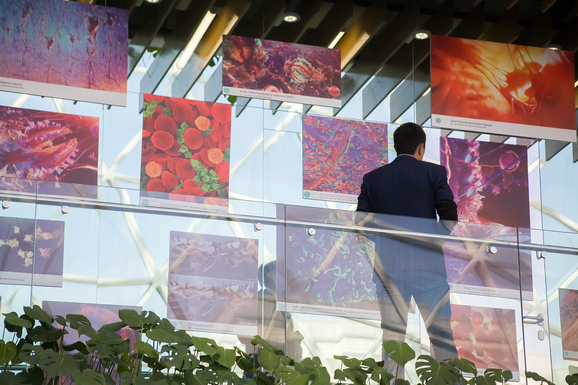 Выставка графических работ микроорганизмов для OpenBio стала традицией. Иллюстрации причудливых фантастических сущностей украшают весь холл Биотехнопарка, где проходит Форум, привлекающий целое созвездие экспертов, практиков наукоемкого бизнеса и представителей власти. Эстетика микромира вносит медитативную ноту в сумасшедший график — посетители невольно задерживаются перед работами, с которых предстают во всей смертельной красоте опасные вирусы, болезнетворные бактерии и микробы. Корреспондент SibRu.com встретился с автором работ Алексеем Кашперским и выяснил, каким образом 3D-иллюстратор вносит свой вклад в науку и помогает врачам и пациентам.