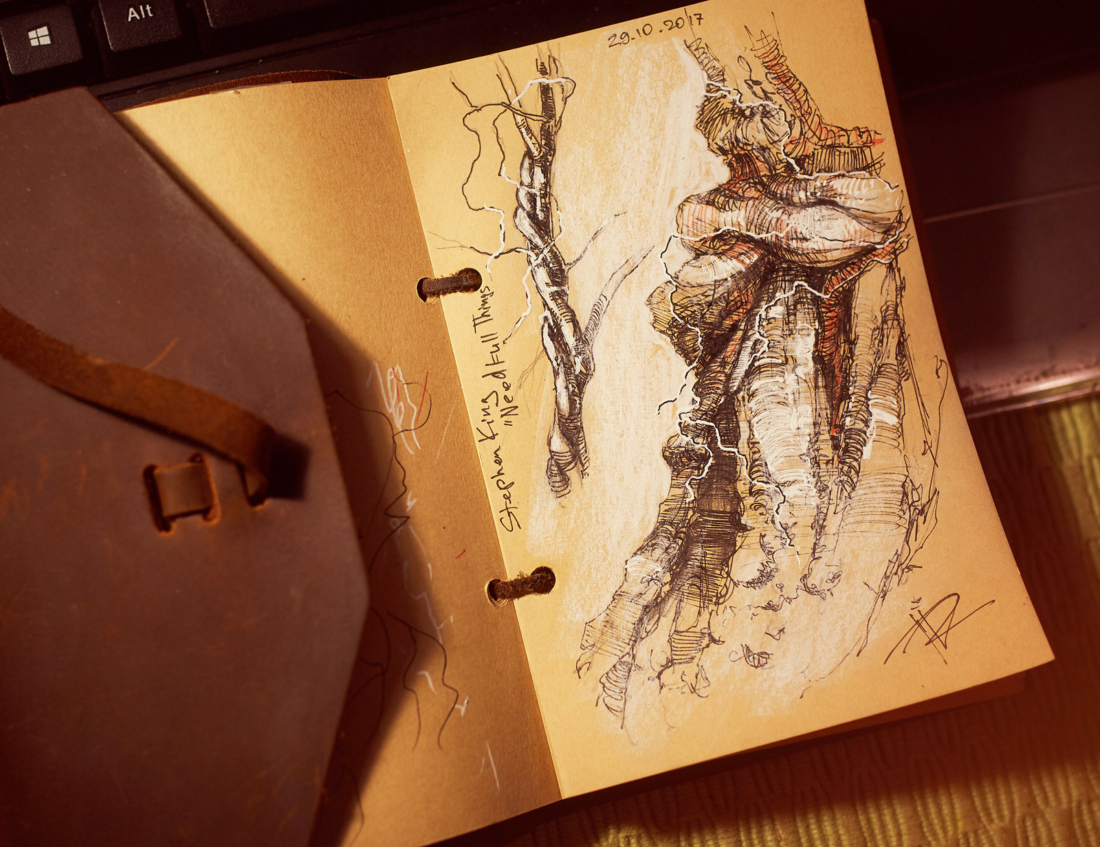 Believe this or not, but it's my first ever real sketchbook. Not just separate paper sheets here and there but as single piece. I know that I had to do this this purchase like 15-17 years ago, but later is better than never... great and exciting feeling. This one is for October 2017
